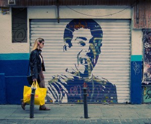 As Leni walked home after another day in a cubicle of a low-ceilinged office building, a graffiti head spoke to her. What surprised her most was not the voice emerging from the stencil sprayed image on the closed steel shutters of a never-open shop, but the fact that the face, an image she had seen many times on her way to and from work, seemed familiar to her in some other way she could not recall.