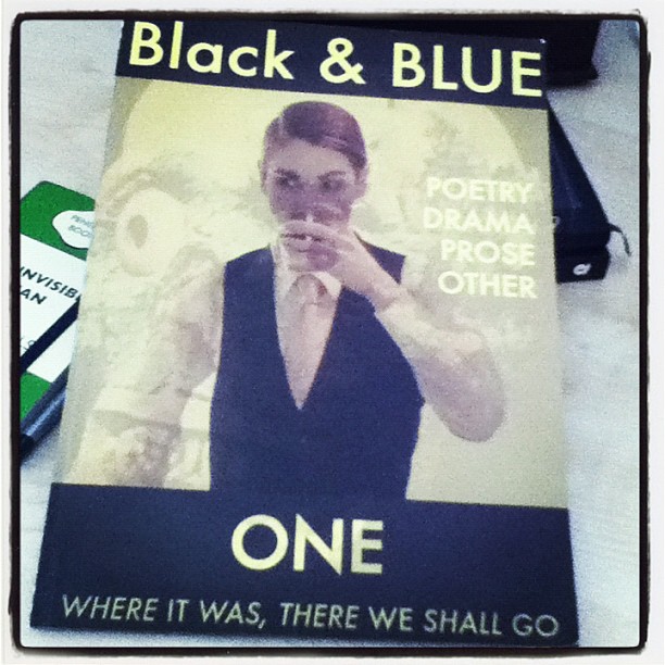 I’ve been reading the excellent first issue of Black & Blue. It’s a neat mix of poetry, drama, prose and other writing. Particularly sweet is the openness of the writing that such a broad sweep of genres allows. Particularly brilliant in the first issue is Angela Readman’s ‘The Alaskan Man I Never Married.’ A poignant glimpse of what might have been yet never would. They have copies to buy still at the link above and writers out there should check out the manifesto and get submitting to what is a rather special little journal. Want a taste of this great new periodical, then check out Beckie Stewart’s (Mg) from issue one.
